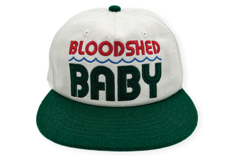 Bloodshed Baby pushed that world even further. The record captures heartbreak and healing in equal measure, turning moments of pain into something quietly defiant and full of life. The lyric “KEEP YOUR EYES ON THE HORIZON” from the title track became the emotional anchor for our design, a phrase that speaks to persistence and perspective. The hat mirrored that spirit through its crisp white crown and deep green brim, accented by red and green stitching that brought the album title to life. A queer badge of honor floated above soft waves, and beneath the brim, the lyric itself served as a hidden reminder to keep moving forward.