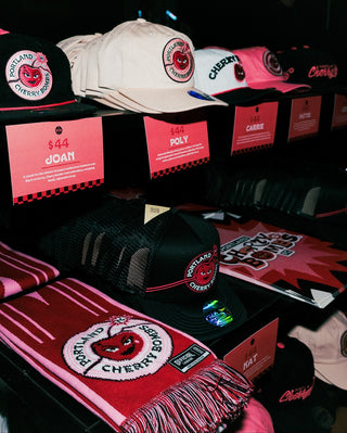 As part of their brand reveal the Cherry Bombs teamed up with Official League for a club debut collection of over 20 premium headwear and apparel items. The club name and branding was inspired by the riot grrrl movement of the 1990s that took over the pacific northwest.