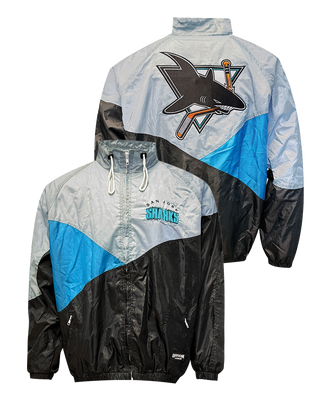The Heritage Chute Jacket channels the bold energy of 90s Sharks hockey through a color-block design of light blue, teal, and black. Crafted from premium lightweight materials, it features embroidered original Sharks branding that gives a sharp, vintage look without losing its comfort and versatility. This chute brings nostalgia and style together in one clean statement piece.