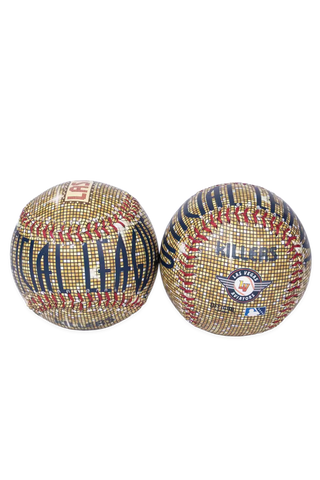 For the first time in our history we crafted a commemorative baseball! This collection would not have been complete without this magnificent Bright Lights Baseball. Name and look inspired by The Killers 2024 single “Bright Lights”, this shimmering gold baseball captures the sparkle and motion of Vegas itself. Only 100 of this baseball were made, and it is the perfect additional keepsake to this one of a kind collaboration.