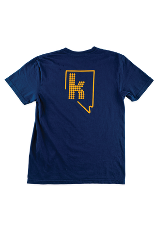 The Navy Nevada Tee keeps things classy up front with small chest logos in the Aviators primary bright orange. On the back, the energy builds with The Killers’ “K” beams Nevada mark, connecting this tee with the Nevada Poppy as the perfect duo.