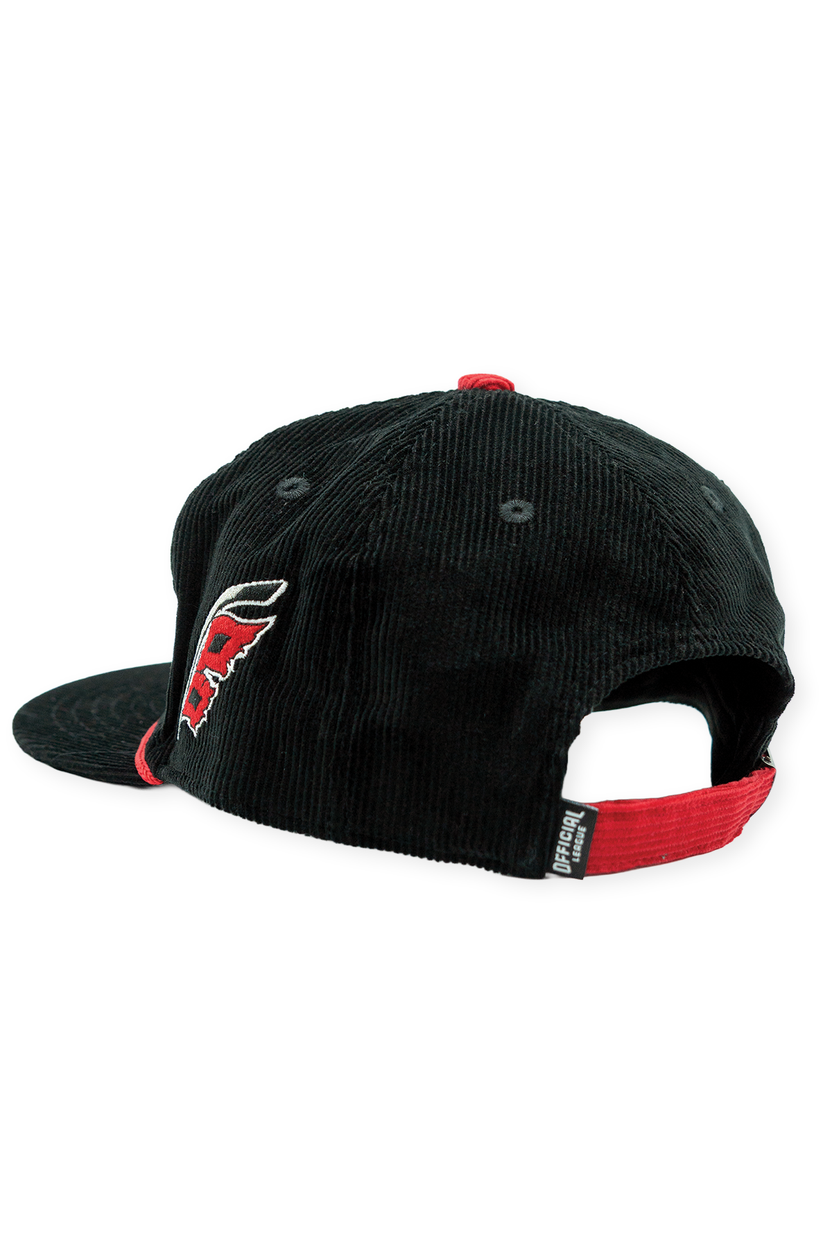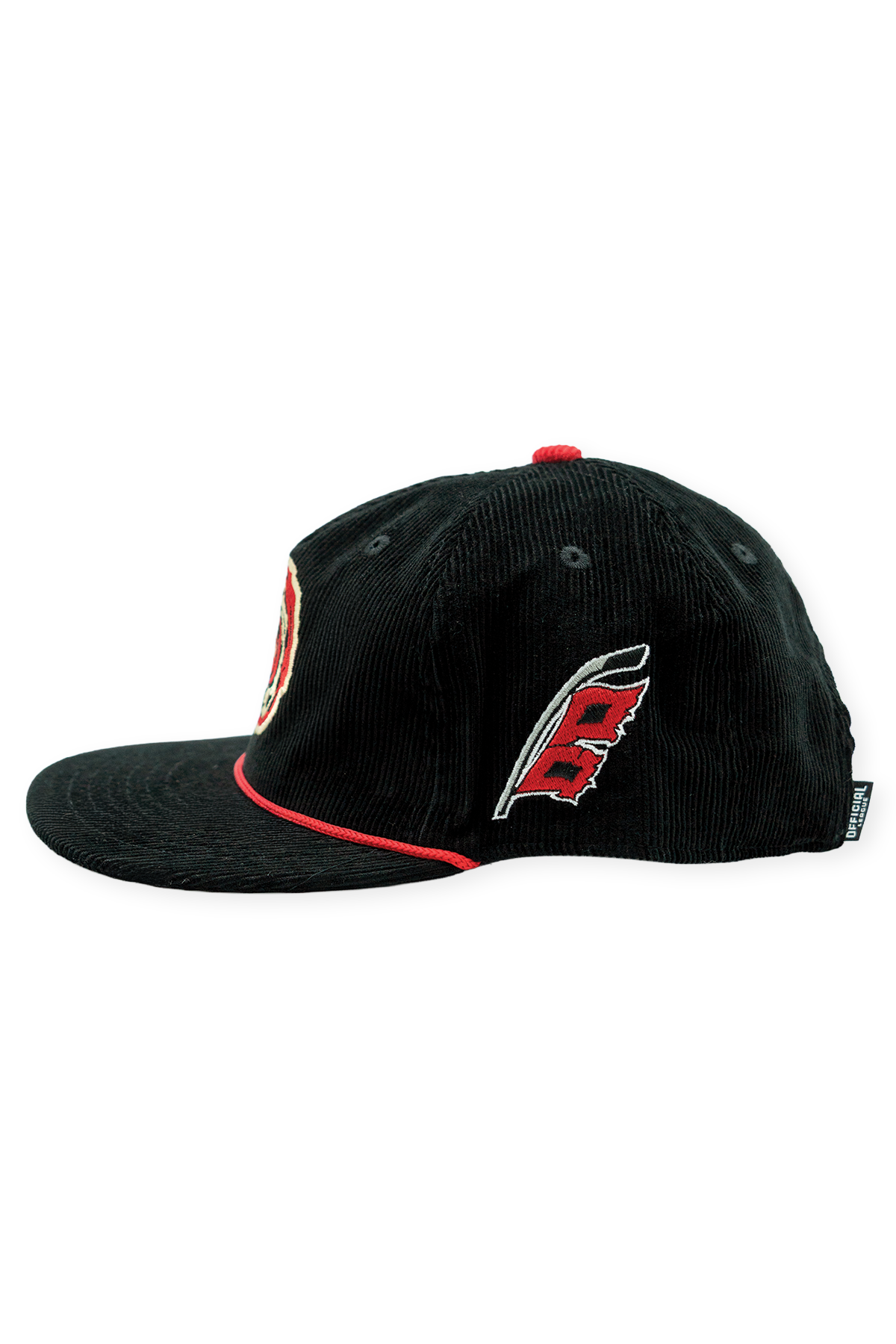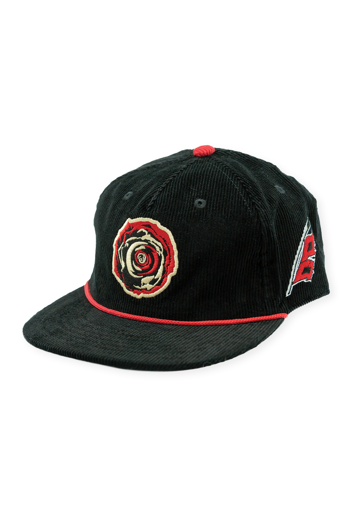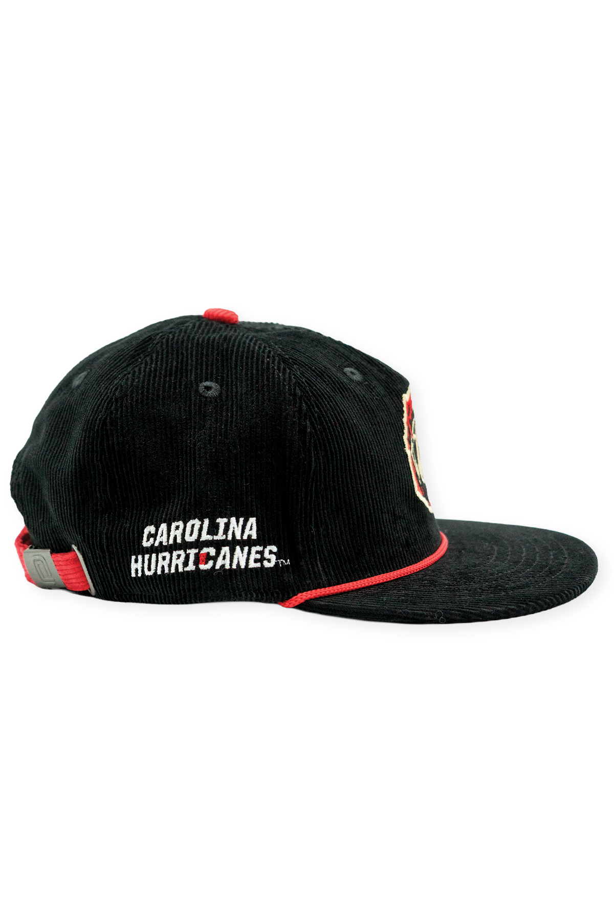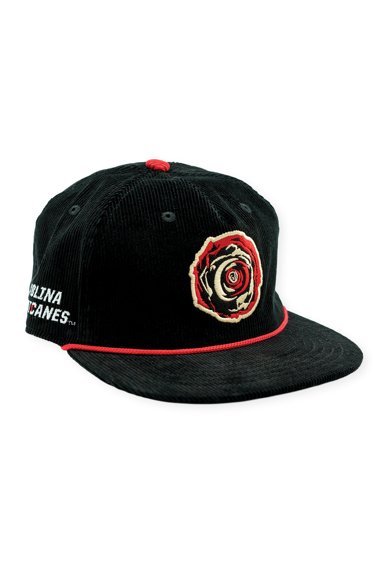 Inspired by the Carolina Hurricanes’ Black Excellence specialty jerseys worn during Black History Month, the Black Excellence Cord Hat brings the story to fans in a refined, wearable form. Crafted from 100% premium corduroy, the deep black crown reimagines the Hurricanes emblem as a multicolored rose designed by North Carolina–born artist Mike Jones, drawing inspiration from Tupac Shakur’s The Rose That Grew from Concrete. The embroidered rose honors resilience and the idea that greatness can emerge from any environment, on the ice and beyond. A red textured rope traces the bill, leading to a side Canes wordmark in white lettering, paired opposite with a hockey stick flying the hurricane warning flag.