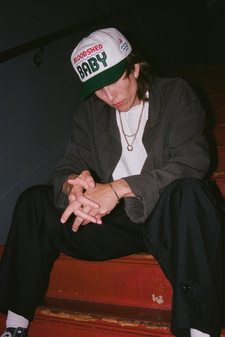 We’ve collaborated with FIGHTMASTER, the introspective, genre-defying artist whose music blurs boundaries as effortlessly as their style. Our first release, Violence, channeled raw emotion and self-discovery into wearable art. The follow-up, Bloodshed Baby, deepened that story, translating its cinematic world into a premium wool hat rich with meaning. Each FIGHTMASTER release is limited-edition.