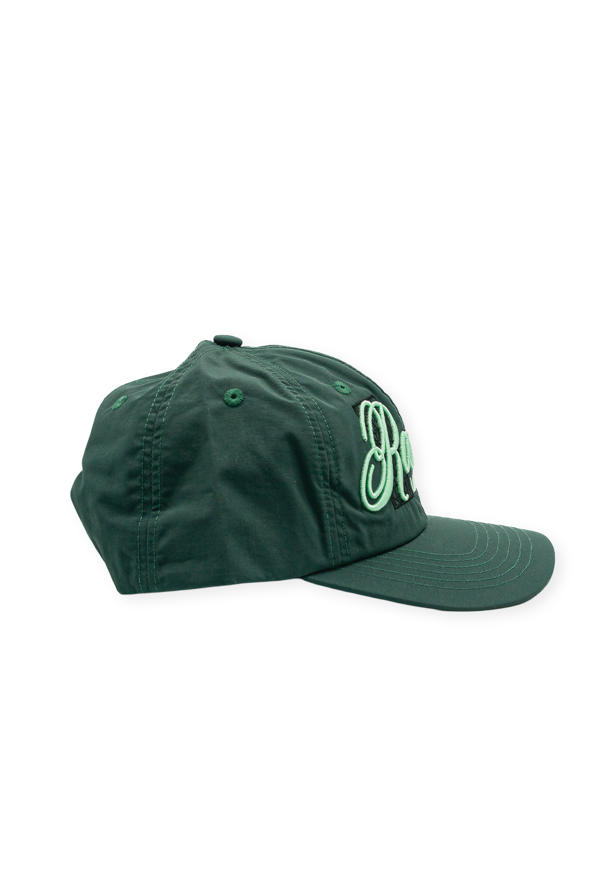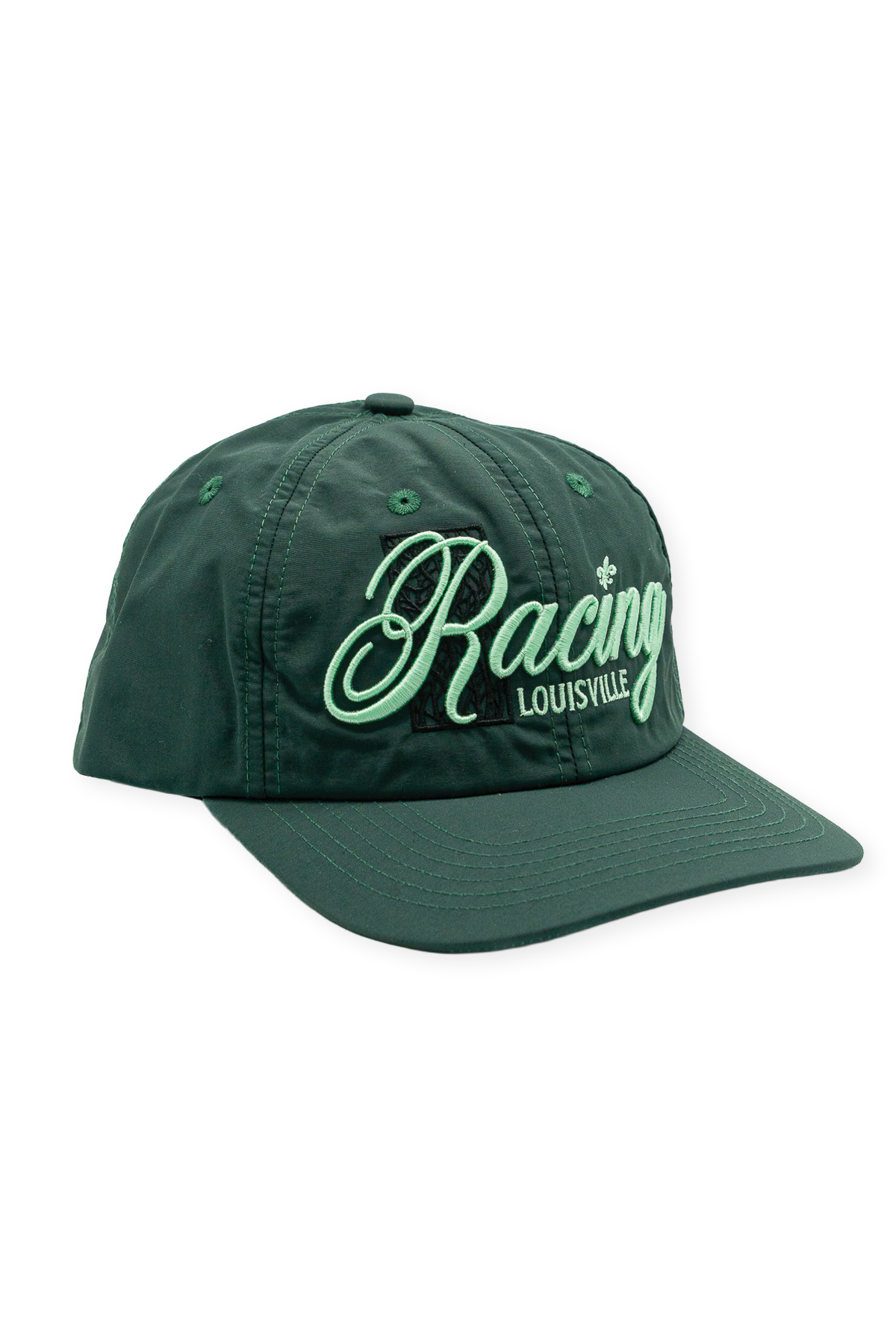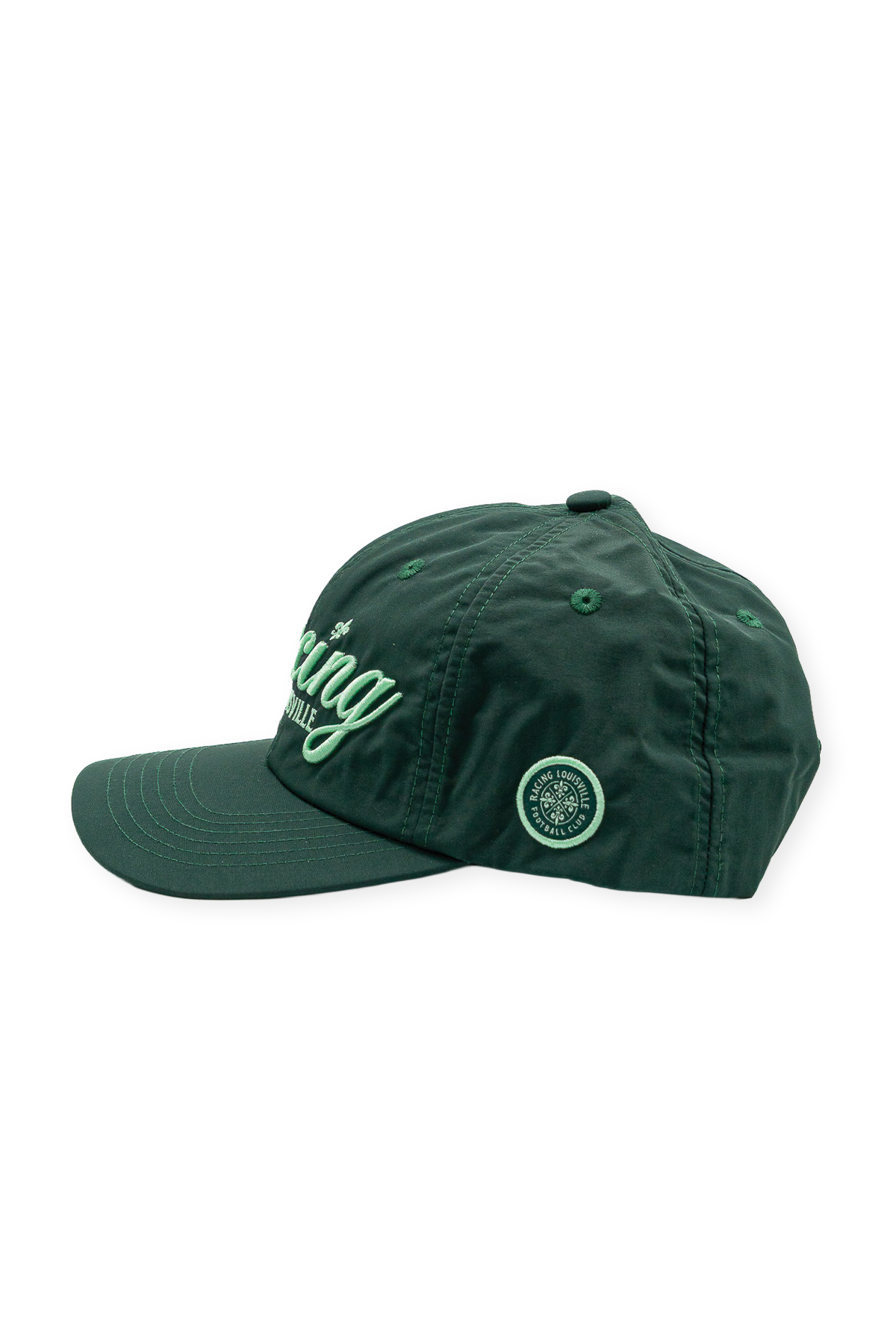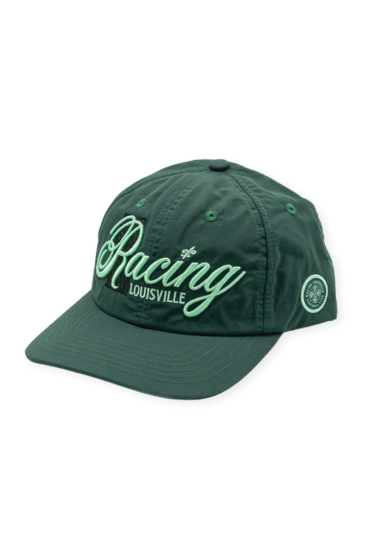 Sleek, fast, and grounded in Racing Louisville heritage, the Roots Nylon is inspired by the turf and the track. Constructed from 100% nylon, this hat offers a smooth, weather-resistant finish in a deep racing green. The script "Racing Louisville" embroidery flows across the front in a sharp mint. Lightweight and durable, it includes an adjustable backstrap and the NWSL crest on the rear.