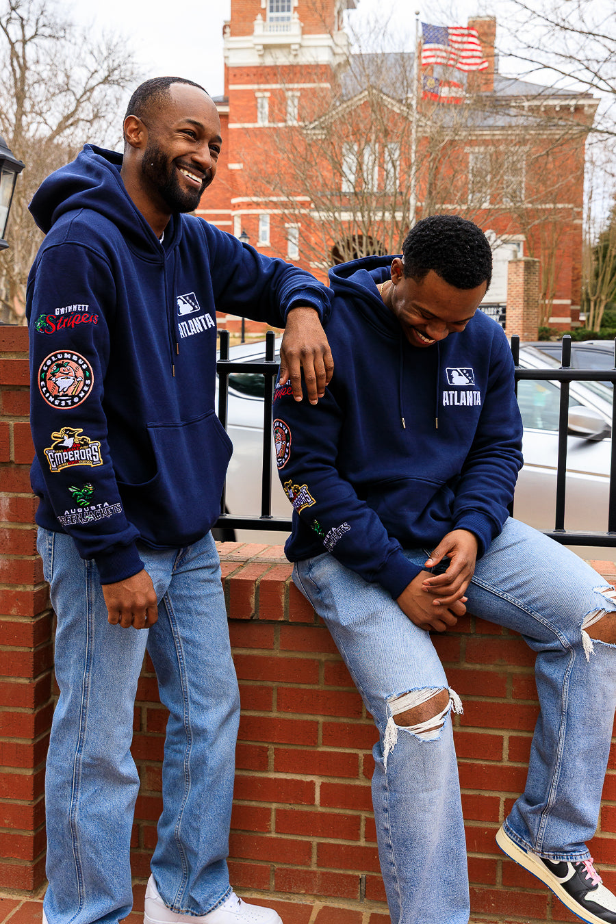 Crafted from 100% premium navy cotton base, the Atlanta Affiliate Live-In Hoodie features embroidered patches from across the organization, tracing the path from the minors to the majors. Displayed along the right sleeve are each of the club’s affiliates, beginning at the cuffs with the Single-A Hill Augusta GreenJackets and continuing through the Rome Emperors, Mississippi Braves, and Gwinnett Stripers at the Triple-A level. Finished with the Official League tag at the hem, this premium hoodie serves as a visual representation of the development pipeline, connecting each stop along the journey to the ATL.