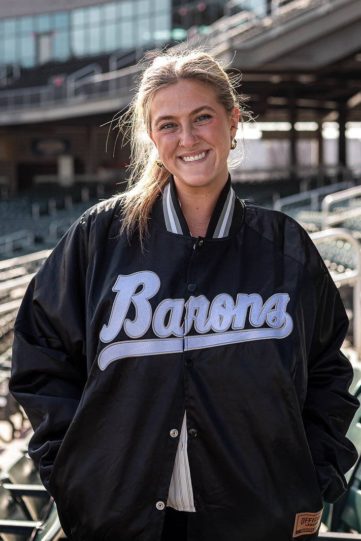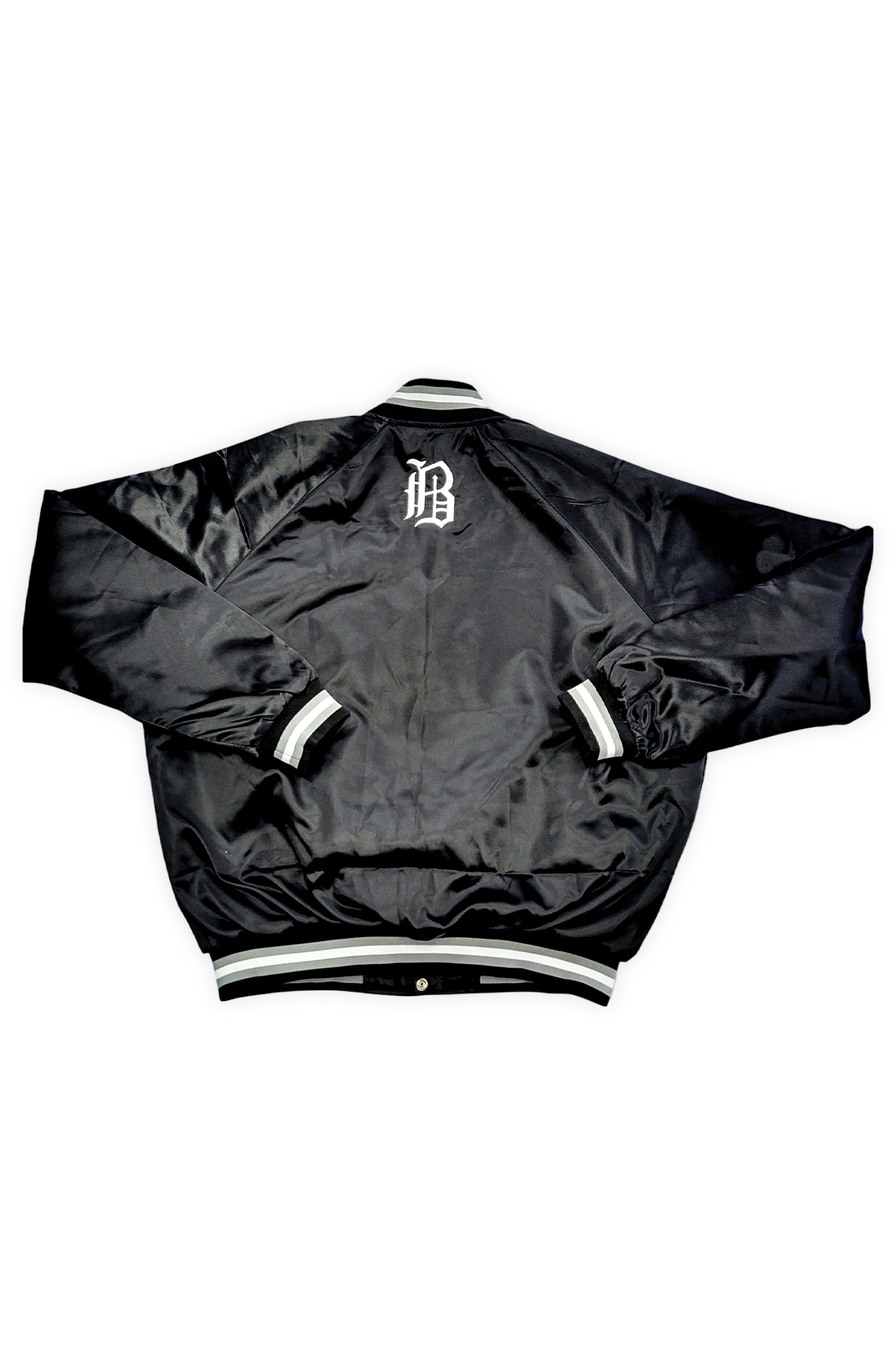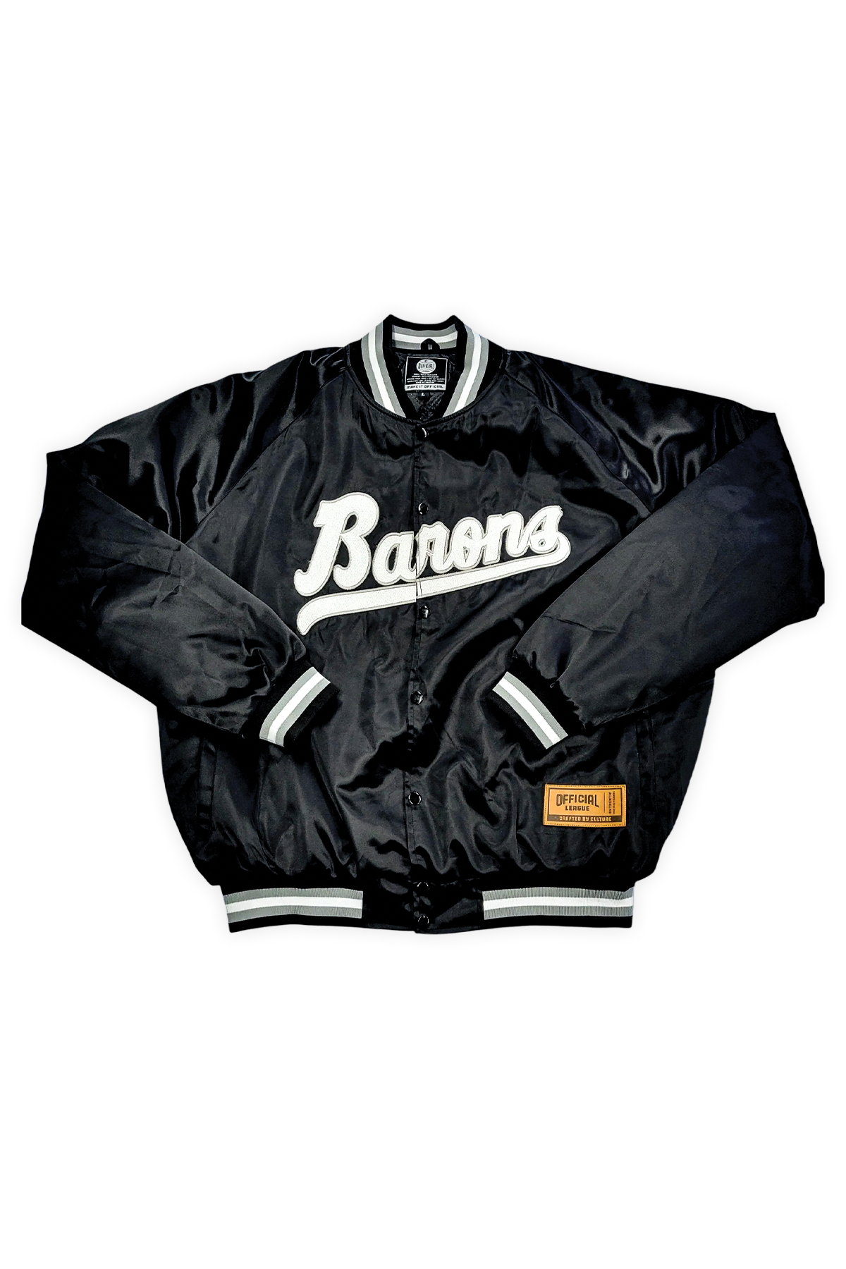 For our first collaboration with the Birmingham Barons, we went back to one of their most infamous eras. The Barons Revival Satin Jacket draws directly from the club’s bullpen jackets of the 1990s, carrying the same presence that once lived on the field and in the dugout. A 100% premium satin shell brings a refined finish to the silhouette, while an Official League leather patch at the hem anchors the piece in craftsmanship and detail. Just below the back striped collar, the Birmingham retro “B” is stitched in to complete the design.