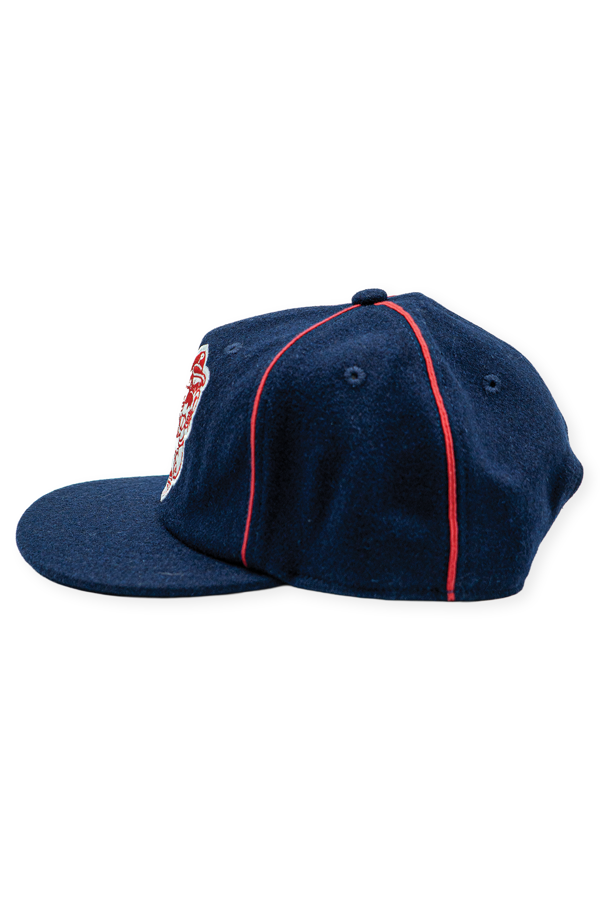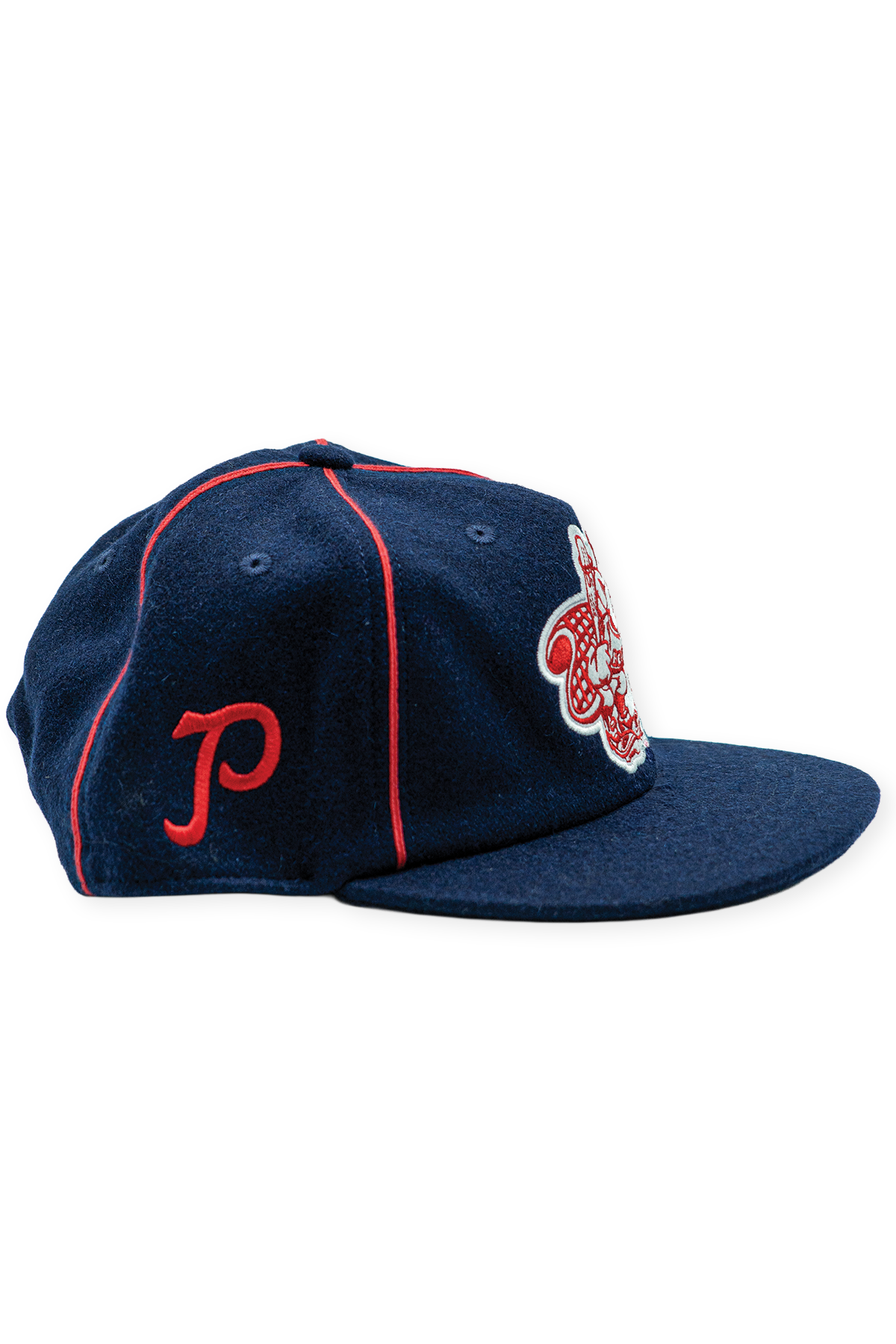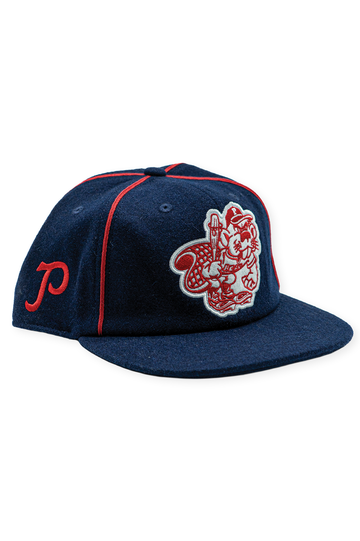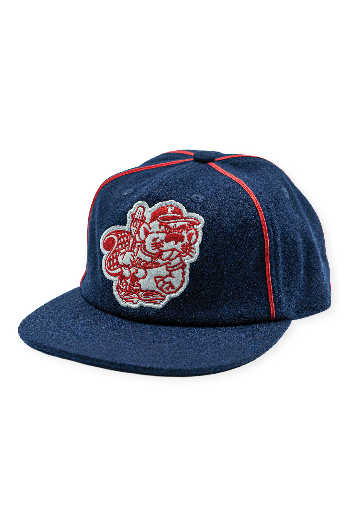 Crafted from 100% wool, this exclusive away style hat from this year’s Diamond Vault Collection honors the legacy of the Portland Beavers, one of the Pacific Coast League’s most storied yet often forgotten franchises. The design showcases a red and white felt patch of the multi-time champions’ vintage mascot on the crown, accented by two strands of subtle red piping intersecting across the top and sides and a stitched cursive “P” on the side in apple red. A classic adjustable snapback strap on the back ensures comfort, while the premium wool build gives it an authentic throwback feel. This piece represents the Beavers’ grit, longevity, and lasting mark on Portland sports history.
